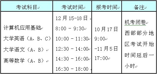 详细信息请参见学院,《关于2012年12月部分公共基础课全国统一考试报名》。