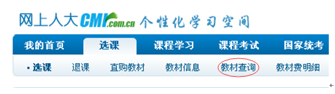 登录学院主页,点击“学生登录”,输入“用户名”和“密码”进入个性化学习空间,点击选课—教材查询: